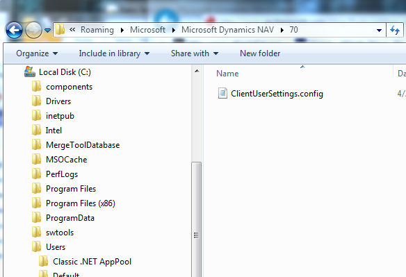 The default ClientUserSettings.config file will be referencing the default service, but we can create a new config file to point to the new instance. Simply copy and rename the file, usually found in the user's path shown in the screen shot below.