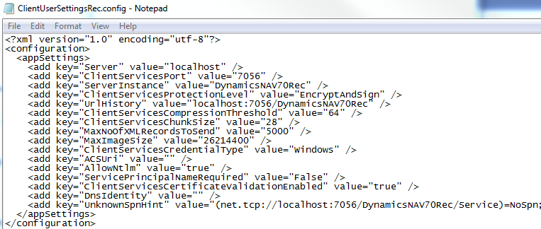 Edit the copied file and change all references to port 7046 to be whatever new port you chose in the instance setup above, and change references to the DynamicsNAV70 service to be the new service name.