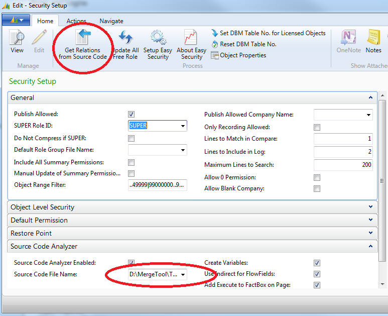 Hopefully, the developer has provided a text file of the objects he changed. If not, they should be exported as text after the fob file has been imported, because a partner/developer license is required for exporting objects to text format. Because there is a new table relationship, we will update source code analysis. Logins and Permissions In Security Setup, enter the text file name described above and select Get Relations from Source Code.