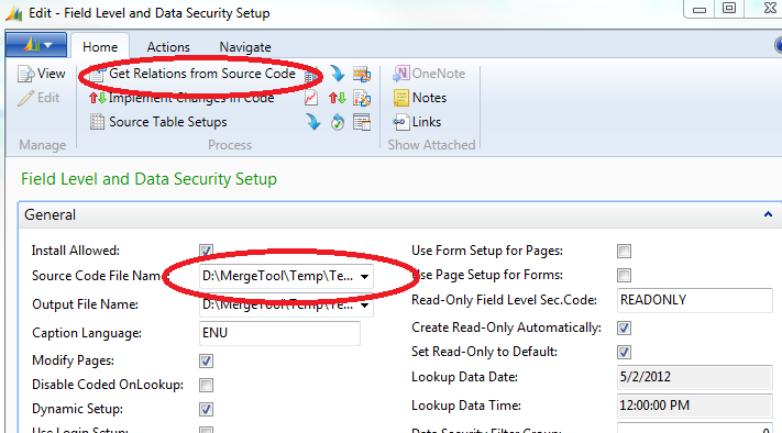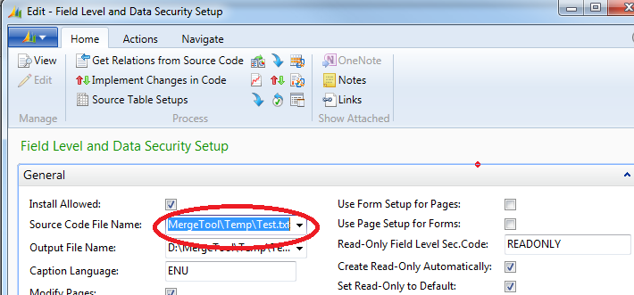 Field Level and Data Security In Field Level and Data Security Setup, enter the text file name described above and select Get Relations from Source Code.
