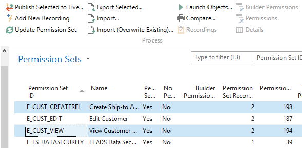 Note: The Permission Set export includes Recordings, Recording Permissions, and Role Builder Permissions. Roles that are not maintained with the Role Builder cannot be exported, this includes the SUPER and Permission Sets for Quick Security and Object Level Security generated based on the Object Properties. Permission Groups Permission Groups can be exported one at a time, or multiple Permission Groups may be selected and exported. Once exported, use the Import function to bring them into production. If the Permission Groups already exist and just need to be updated, use the Import (Overwrite existing) option. Note: Permission Sets must already be imported if they are part of Permission Groups. Object Properties Object Properties can be exported one at a time, or multiple Object Properties may be selected and exported. Once exported, use the Import function to bring them into production. If the Object Properties already exist and just need to be updated, use the Import (Overwrite Existing) option. The Permission Sets based on the Object Properties cannot be exported as a Permission Set this is the Quick Security and Object Level Security. When importing the Object Properties is the Permission Sets created properly, this include the Quick Security and Object level Security Permission Sets. Note: If deleting records in the Object Properties, all Object Properties can be exported from the test database and before importing delete all the Object Properties in the production database. Recordings (not included in a Role) Recordings can be exported one at a time, or multiple Recordings may be selected and exported. Once exported, use the Import function to bring them into production. If the Recordings already exist and just need to be updated, use the Import (Overwrite Existing) option. Note: When importing Recordings or Permission Sets including Recordings can the number series used for Recordings be messed up by newer numbers imported. Change the number series in the Security Setup for the production database to use a different number series than the default RECxxxx, it could be for example PRODxxxx. Logins (Login Access Controls) Login Access Controls can be exported one login at a time, or multiple Logins may be selected and exported. Once exported, use the Import function to bring them into production. If the Login Access Controls already exist and just need to be updated, use the Import (Overwrite existing) option. The Logins must already exist in Easy Security. To create the login; add the Users in the standard NAV security tables and use the Get New Logins from Live to add in Easy Security. Note: Permission Sets and Permission Groups must already be imported if they are part of the Login Access Controls. Company Groups must be created manually to match the exported data. Field Level Security Codes and Data Security Codes Codes can be exported one at a time, or multiple codes may be selected and exported. Once exported, use the Import function to bring them into production. If the codes already exist and just need to be updated, use the Import (Overwrite Existing) option. Note: If the Field Level Security Code or the Data Security Code is copied from the Setup Company must the import the done in the right company. The following must be set manually in production: User Security Setup User Filters Source Table Setups Login Setup All of the tables above is a simple record and can be copy/pasted in most version of NAV after importing the complex structures above. |